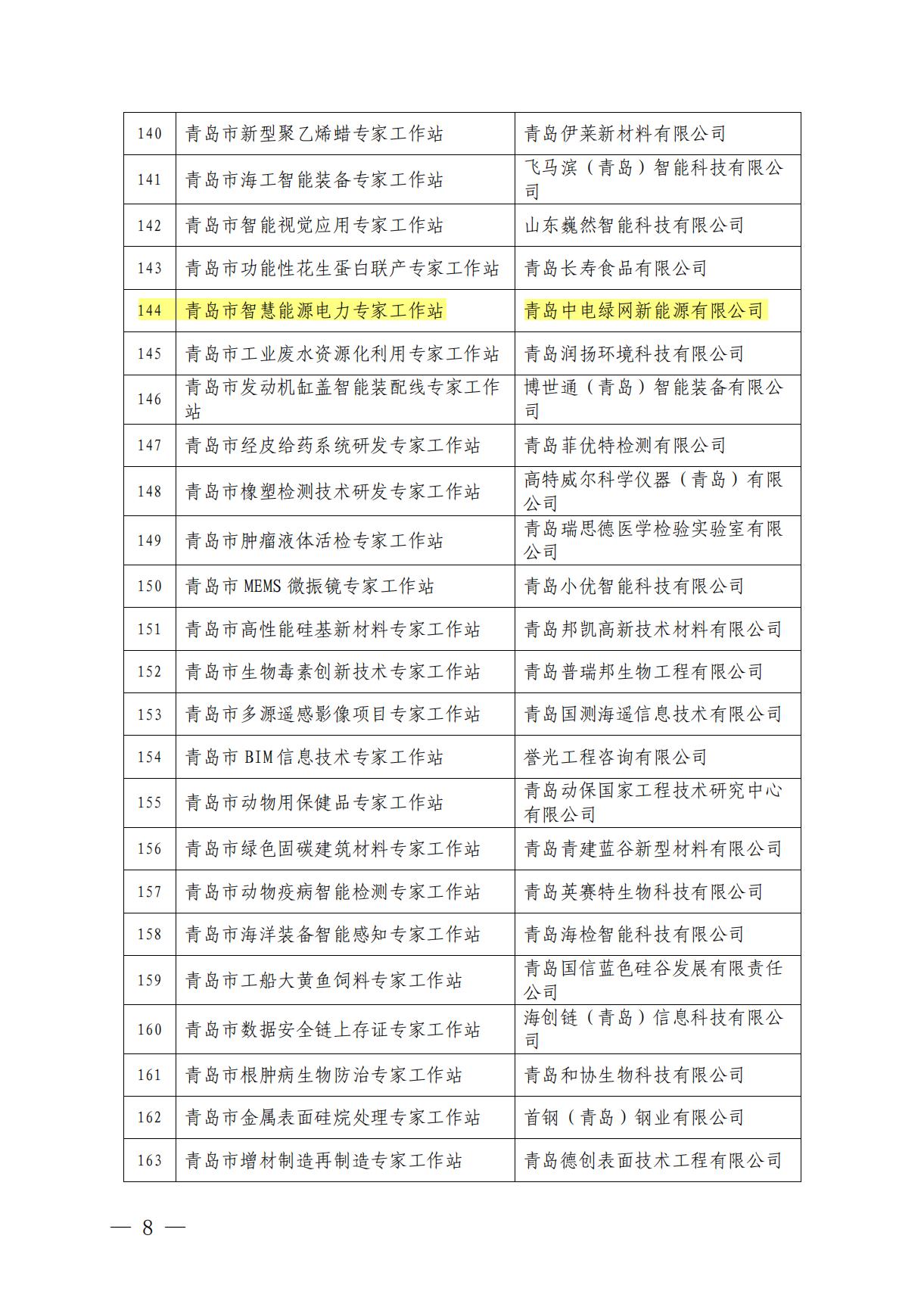青島中電綠網新能源有公司榮獲“青島市專家工作站”